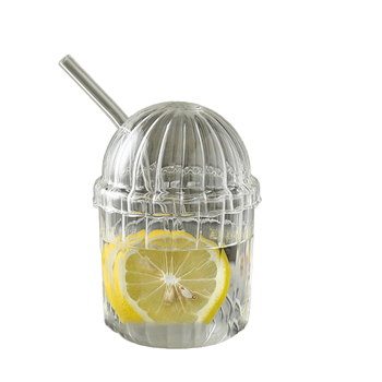 Taza de agua de té de cristal de estilo Vintage de borosilicato alto, tazas de café creativas con diseño de mariposa Vertical con pajita
